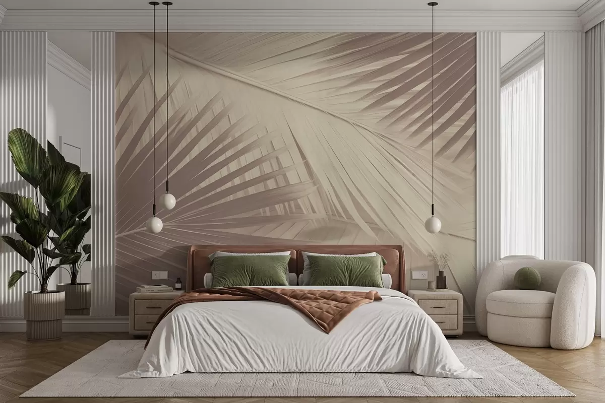 Murais de parede Folhas de palmeira abstratas em tons suaves Nr. w08677