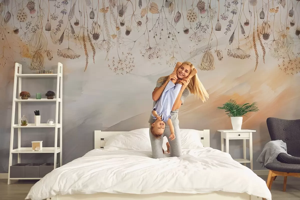 Murais de parede Flores silvestres em estilo aquarela em tons pastéis em um fundo de pincelada Nr. w08681
