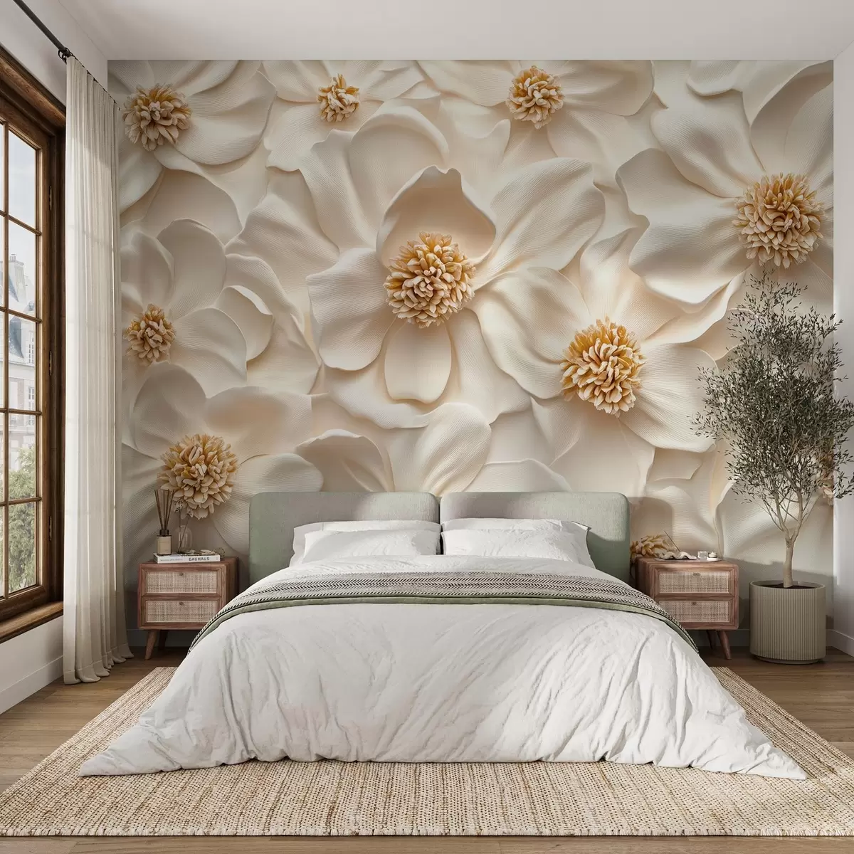 Murais de parede composição floral bege em 3D com detalhes em amarelo Nr. w08691