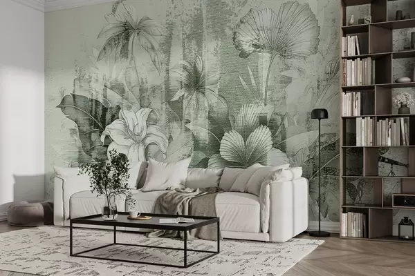 Murais de parede Design vintage com flores e plantas exóticas Nr. w08767v3