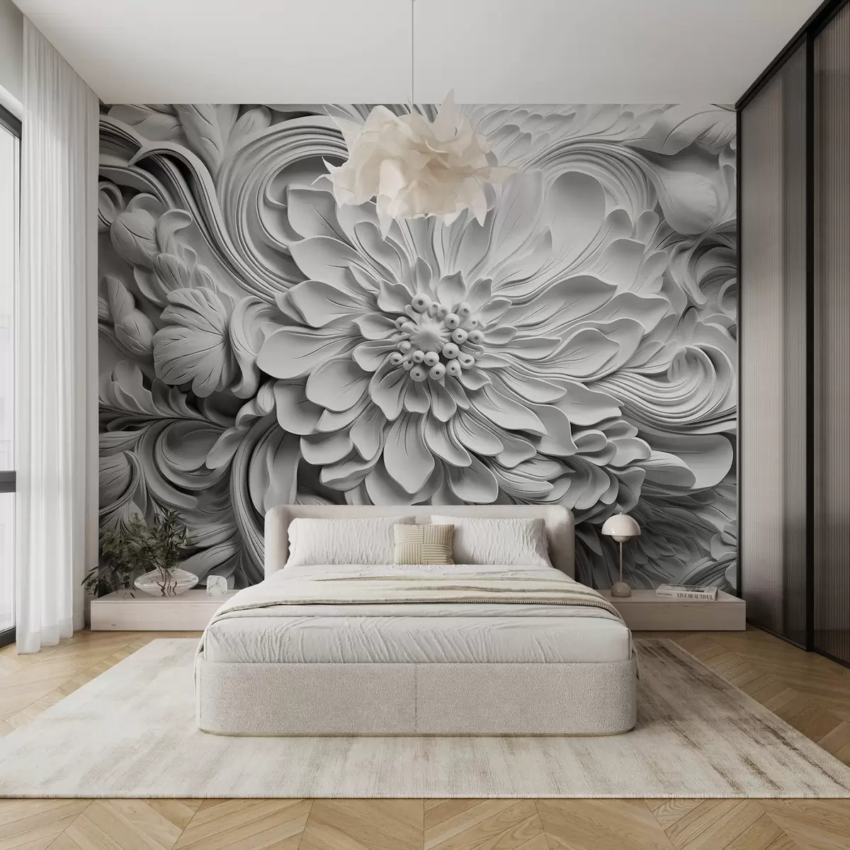 Murais de parede Imitação de moldagem, flores grandes Nr. w08790