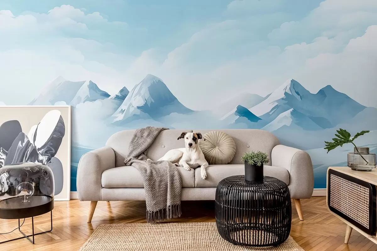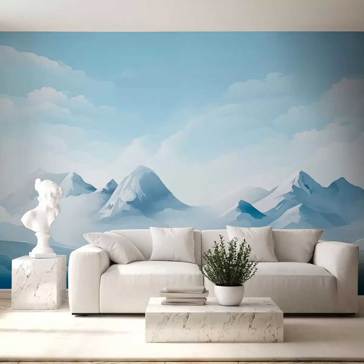 Murais de parede Nuvens e montanhas azuis minimalistas, clima gelado Nr. w08811