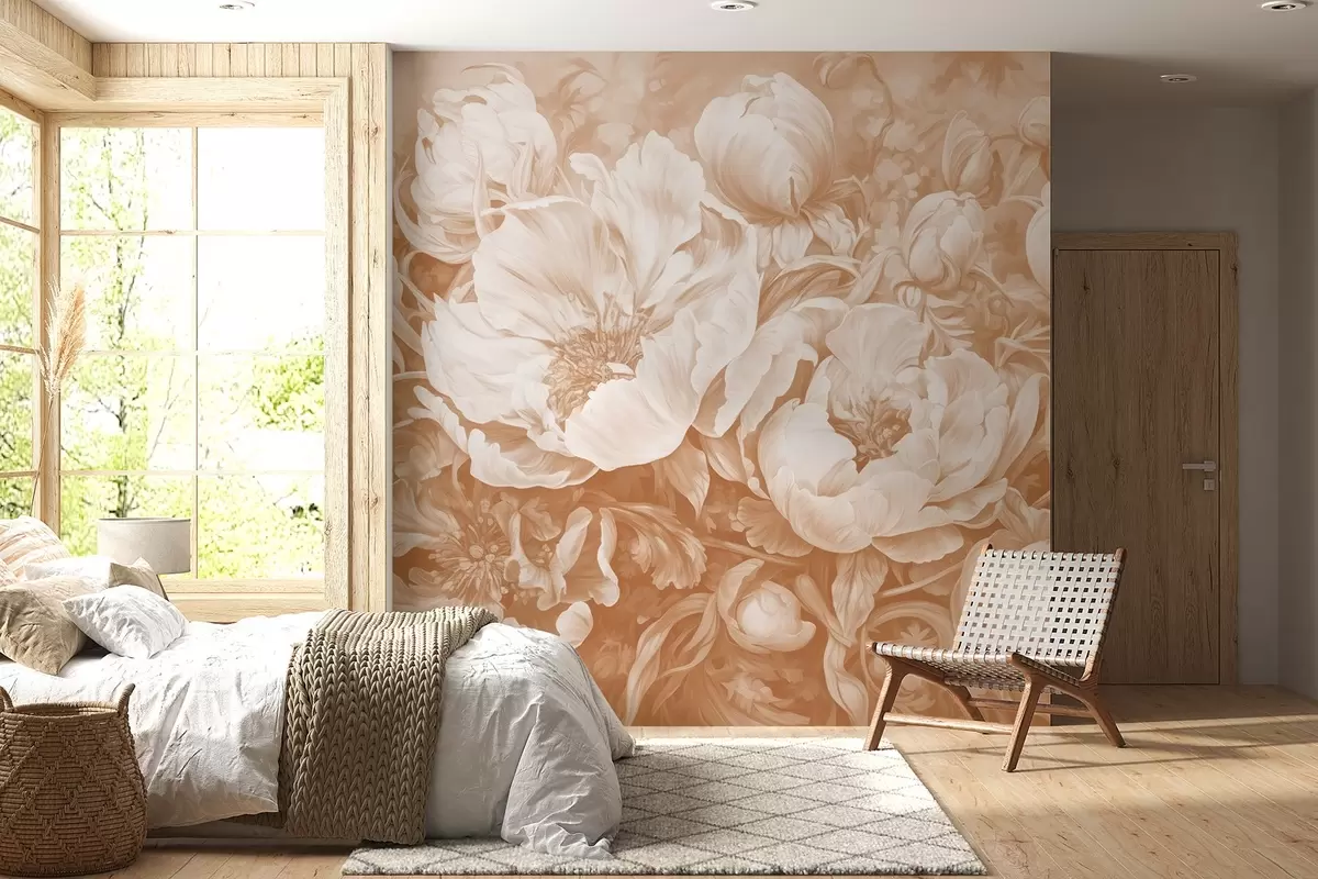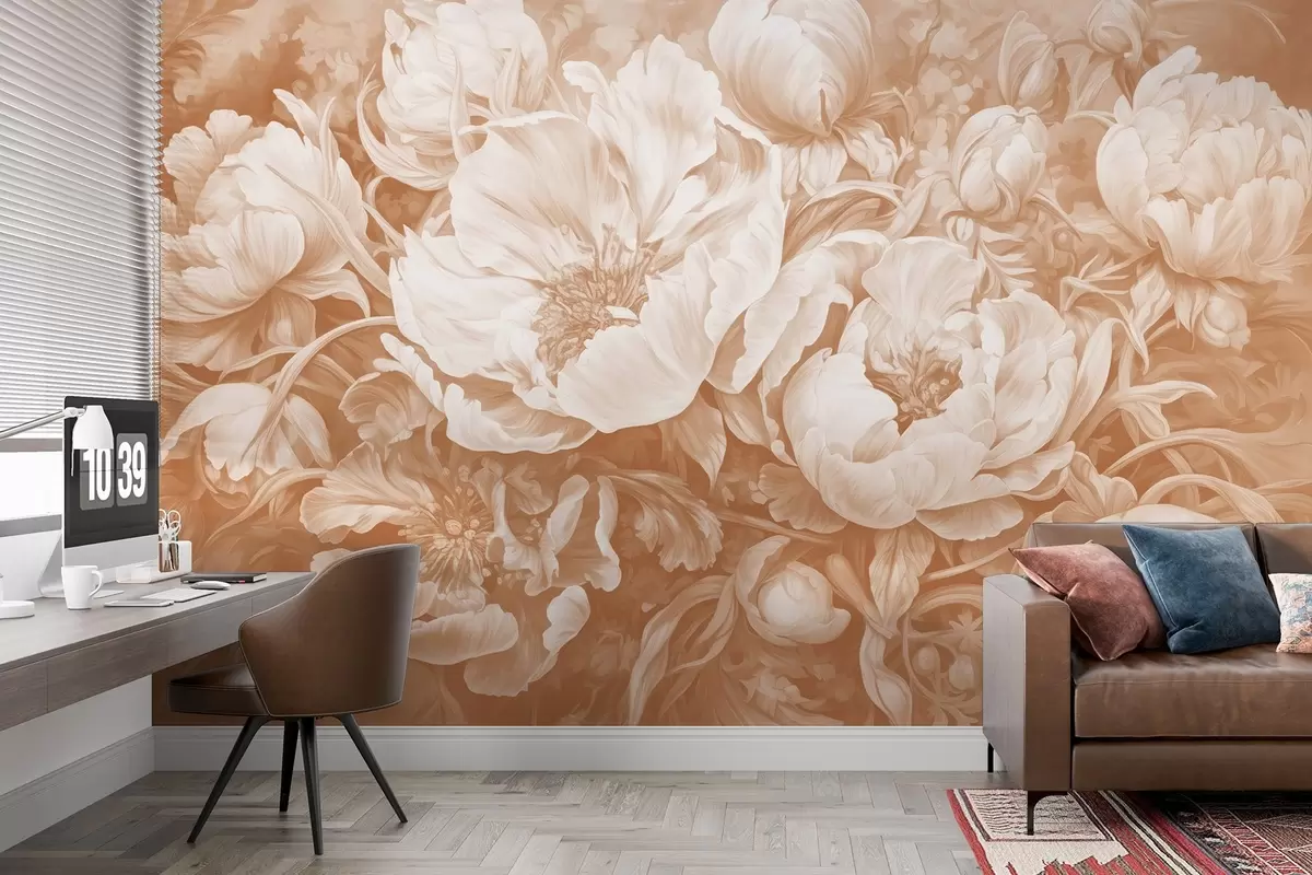 Murais de parede Tulipas e peônias, uma composição floral em estilo pincelada a óleo bege Nr. w08817v1