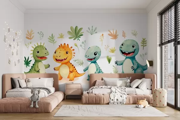Murais de parede Dinossauros e plantas fofos em estilo aquarela Nr. w08874