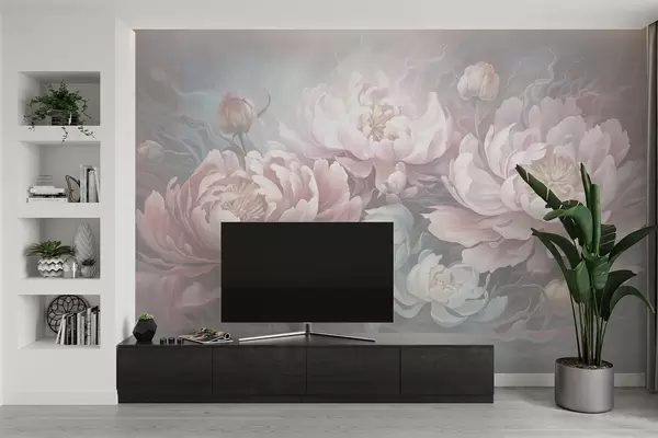 murais de parede Peônias de contos de fadas em estilo de pincelada em tons frios w08879v1