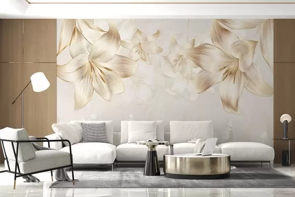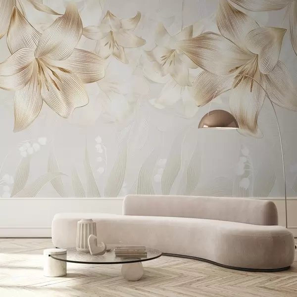 Murais de parede Lírios amarelos com detalhes de linhas complexas, arranjo floral elegante, paleta de cores neutras Nr. w08912