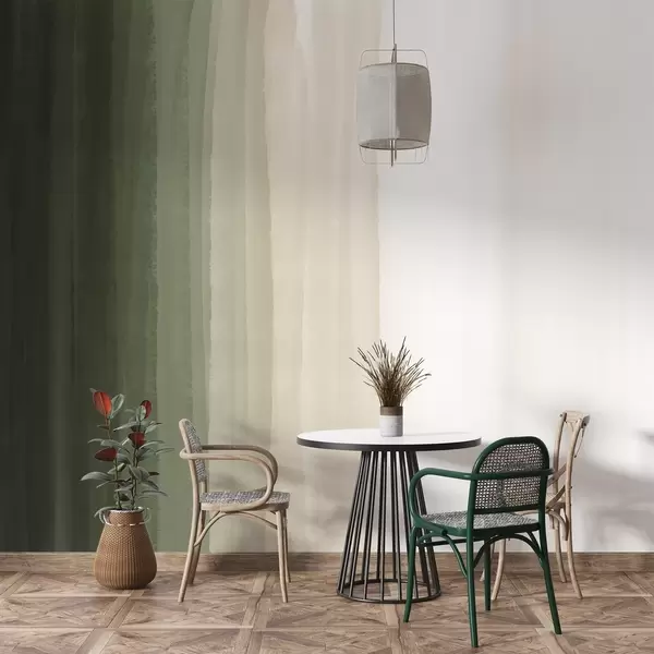 Murais de parede Impressão abstrata minimalista em gradiente com listras verticais em verde escuro, bege e branco Nr. w08915