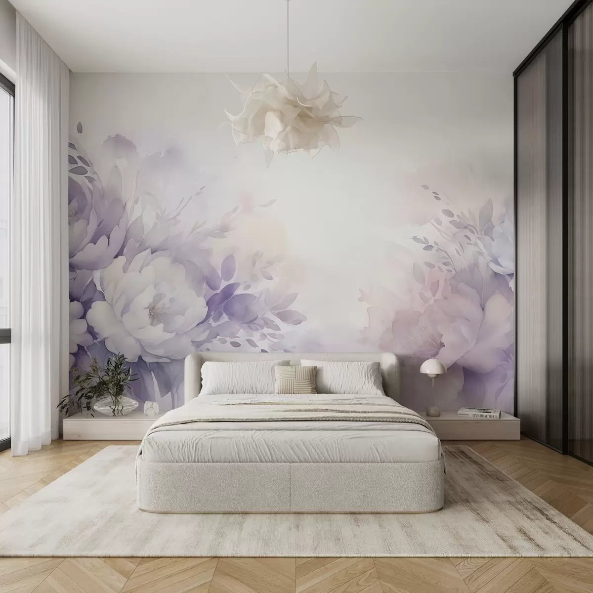 Murais de parede Flores lilases grandes e delicadas, imitação de aquarela Nr. w08946