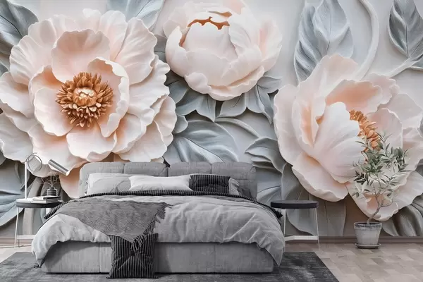 Murais de parede Magníficas peônias grandes com folhas em estilo afresco Nr. w08954