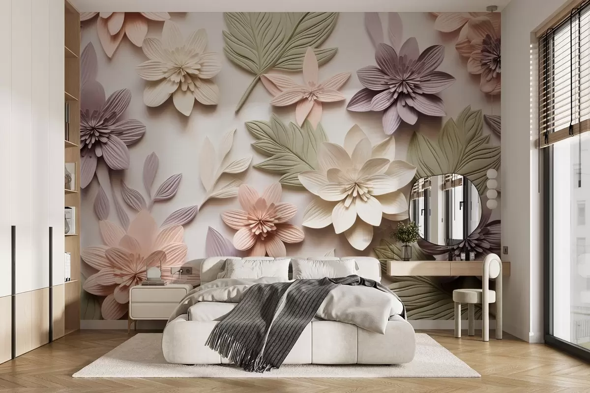 Murais de parede relevo floral em 3D na forma de uma composição de papel Nr. w08958