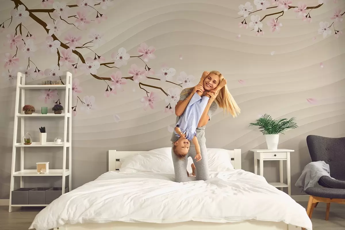 Murais de parede Ramos de Sakura em um fundo arenoso ondulado Nr. w08959