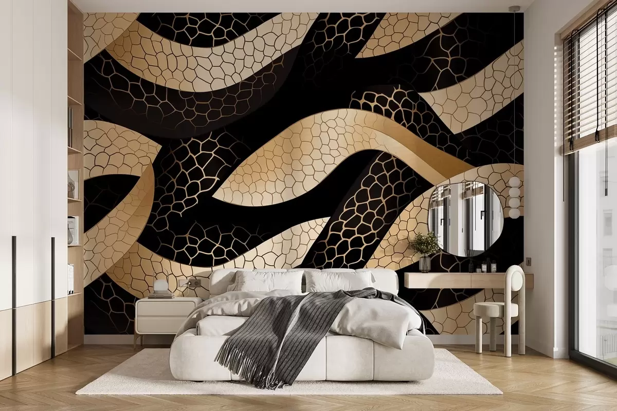 Murais de parede Padrão entrelaçado bege e preto Nr. w08964