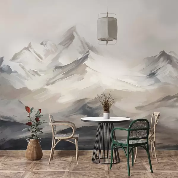 Murais de parede Paisagem de montanhas com céu claro, pinceladas, cores neutras bege e cinza, cadeia de montanhas Nr. w08980