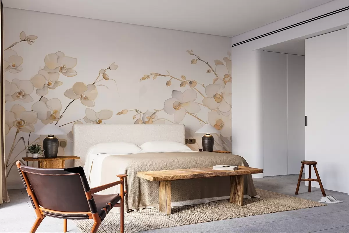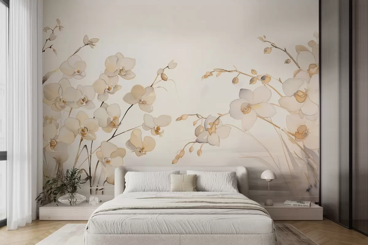 Murais de parede Orquídeas bege crescendo nas laterais da água em estilo aquarela Nr. w08998