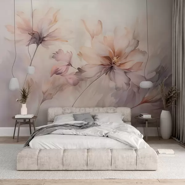 Murais de parede Uma delicada arte floral com grandes flores em tons pastéis com pétalas translúcidas, hastes suaves e um fundo suave e difuso Nr. w09050