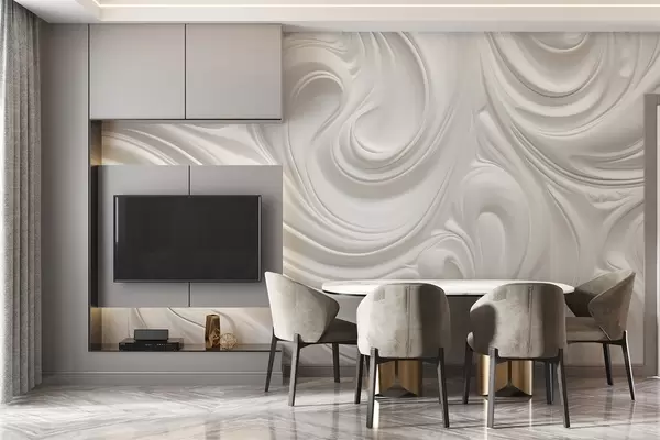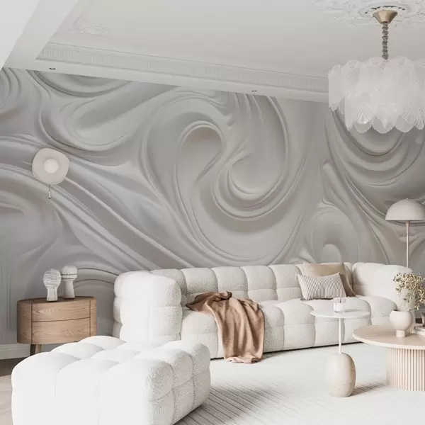 Murais de parede Arte moderna abstrata branca com redemoinhos e ondas fluidas, textura suave, design elegante, estética minimalista Nr. w09059
