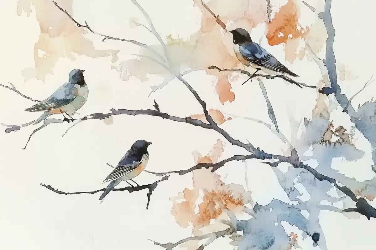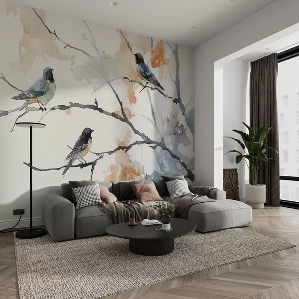Murais de parede Pássaros em galhos de árvores em estilo aquarela Nr. w09064