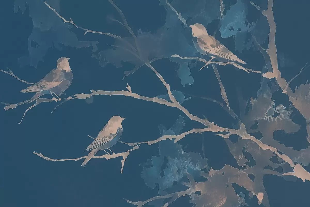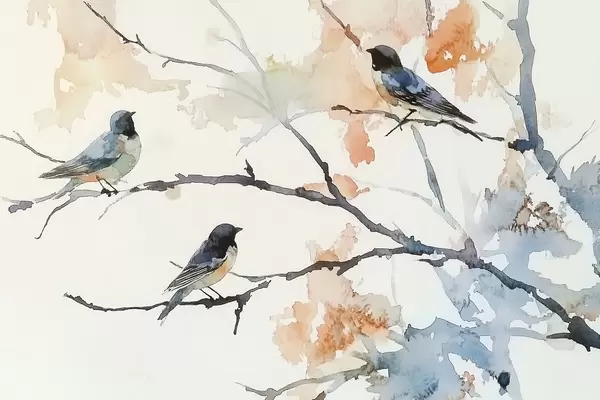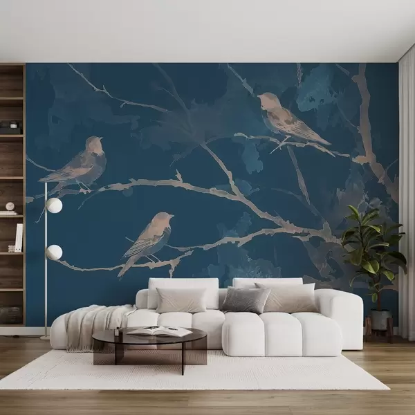 Murais de parede Pássaros em galhos de árvores em estilo aquarela Nr. w09064v1