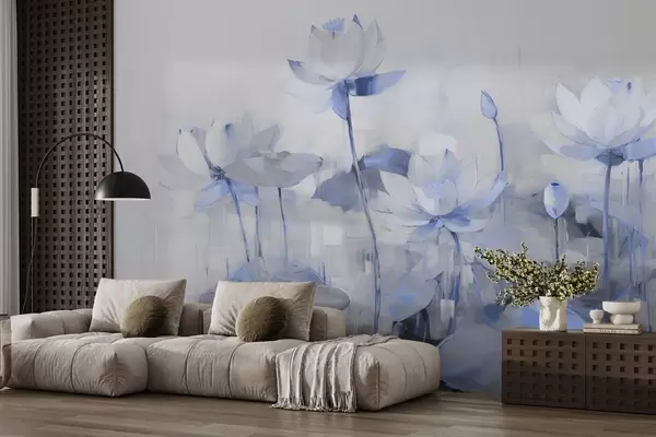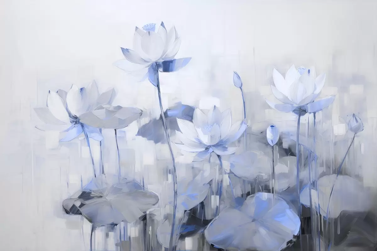 Murais de parede Delicadas flores de lótus pintadas com acrílico Nr. w09067v1