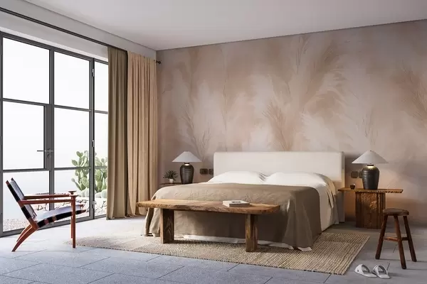 Murais de parede Grama dos pampas em tons de bege e rosa Nr. w09077