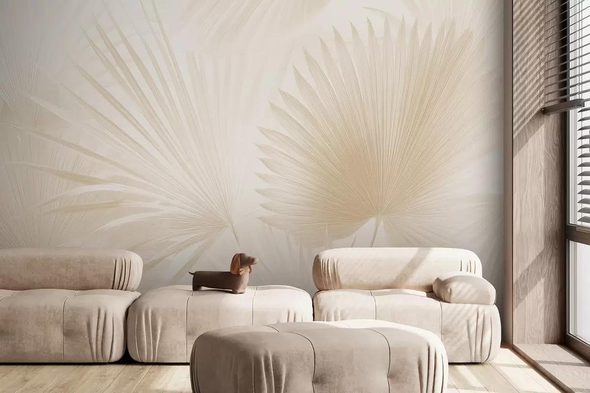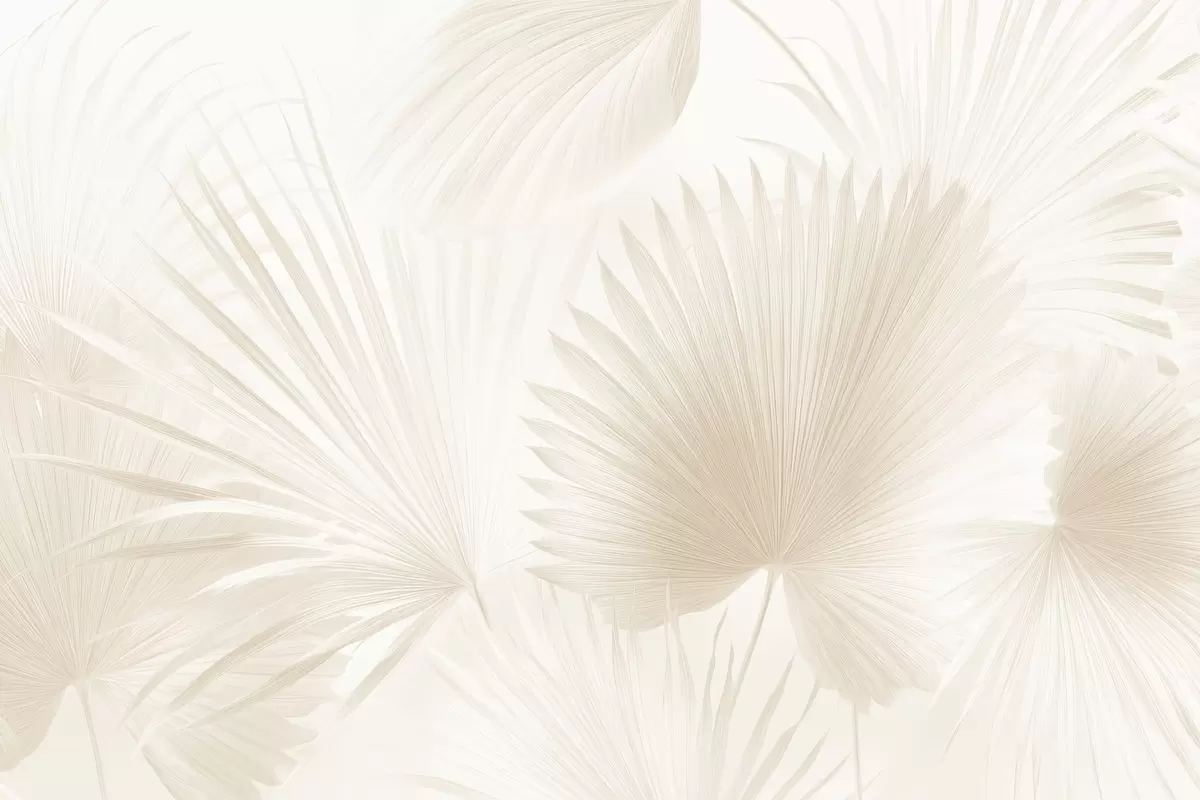 Murais de parede Leques de folhas tropicais suaves em um fundo claro Nr. w09084v1