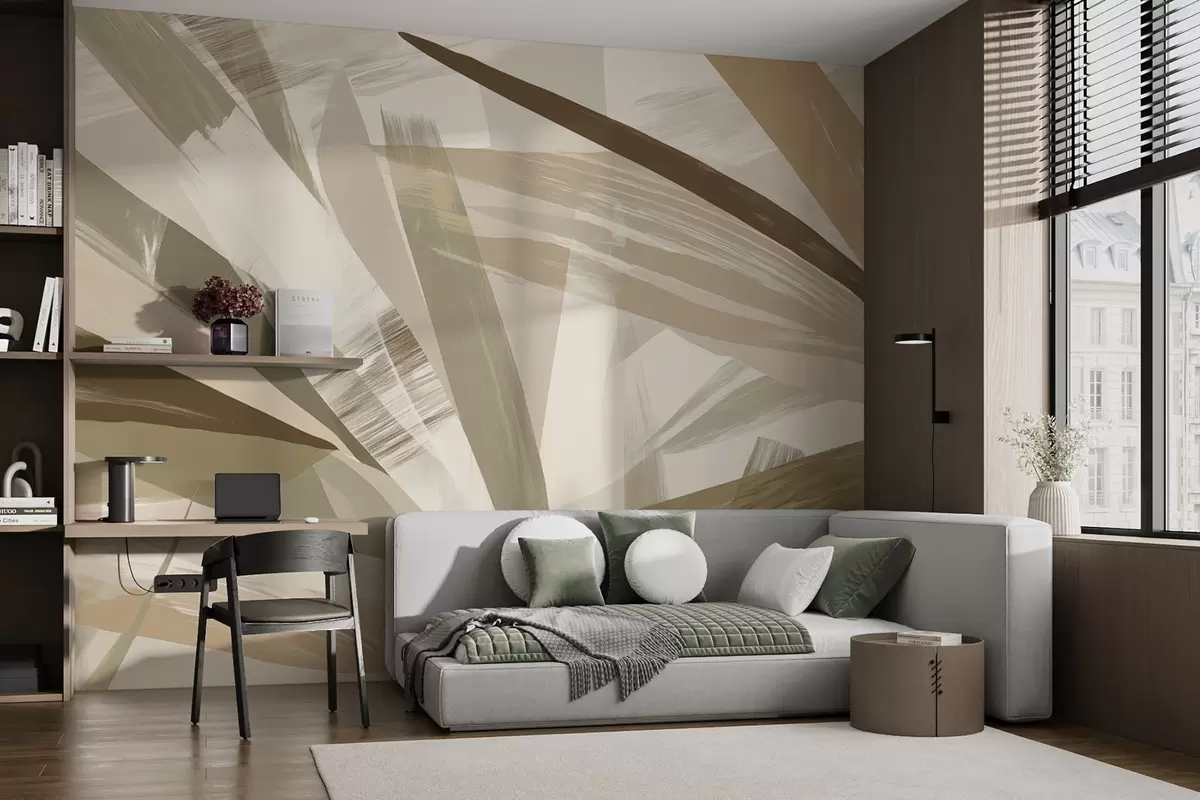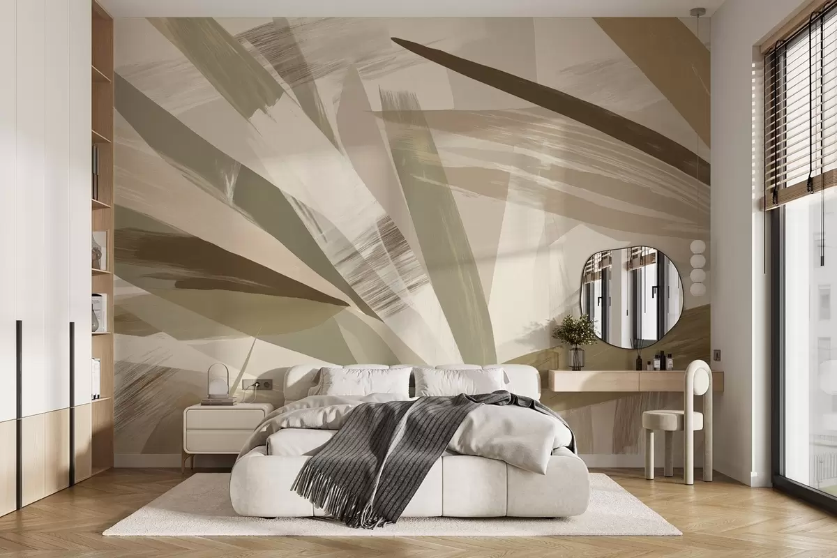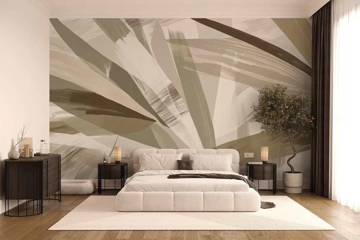 Murais de parede Folhas abstratas em tons de verde e bege Nr. w09091