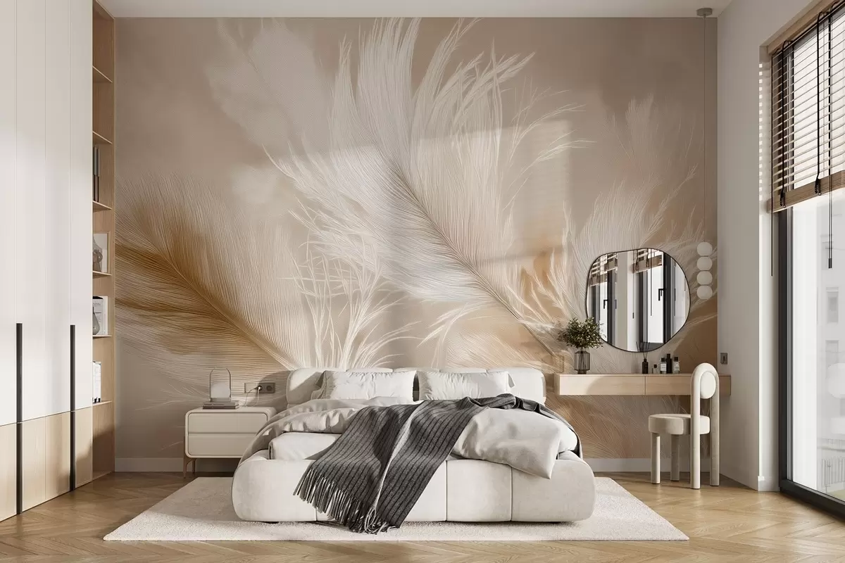 Murais de parede Penas voadoras em um fundo bege Nr. w09102