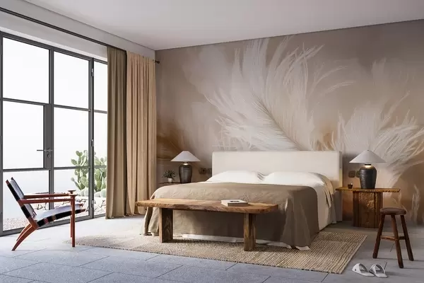 Murais de parede Penas voadoras em um fundo bege Nr. w09102