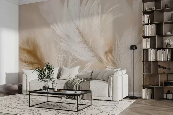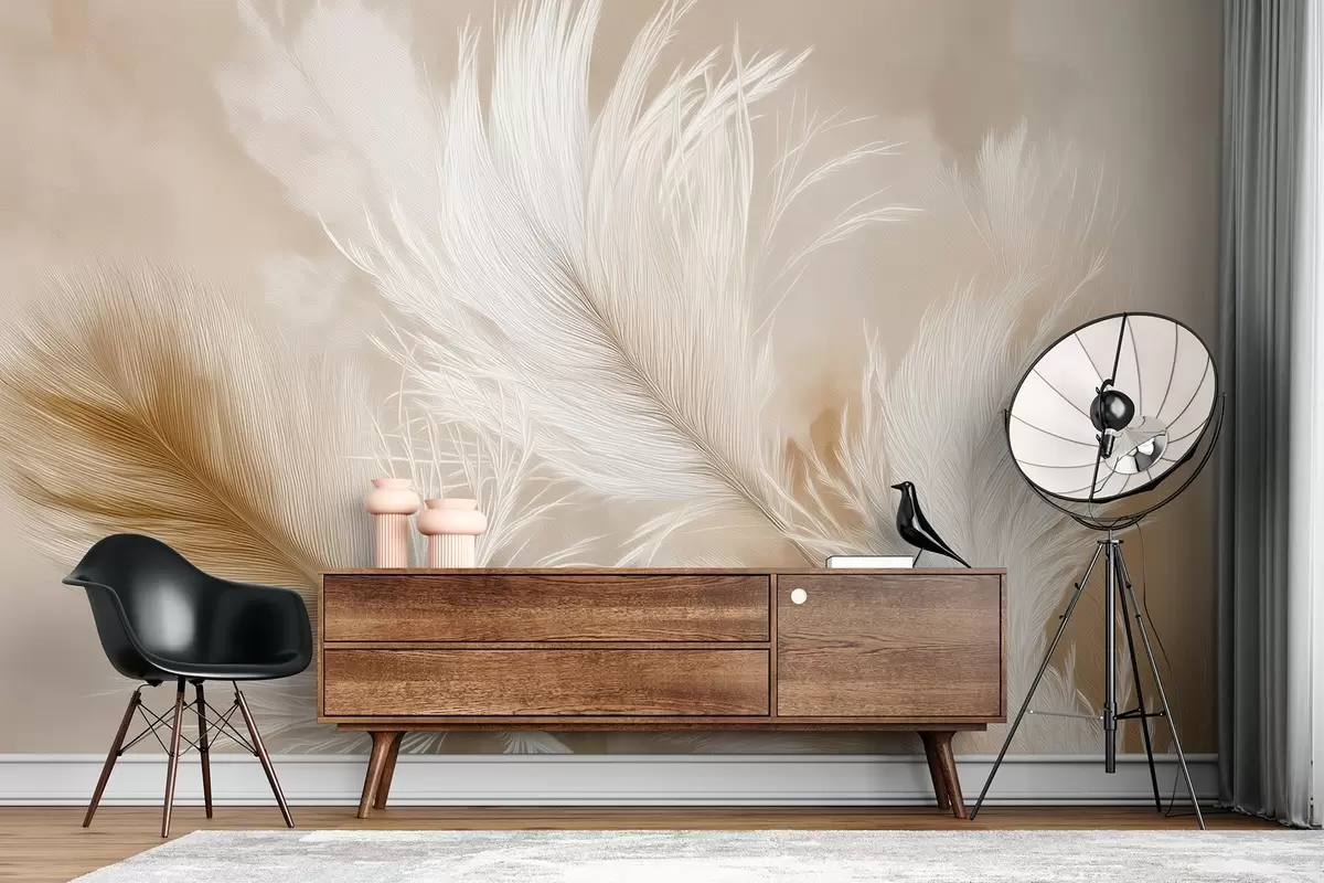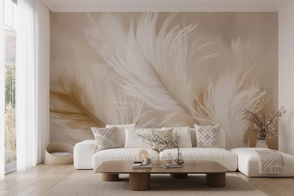 Murais de parede Penas voadoras em um fundo bege Nr. w09102
