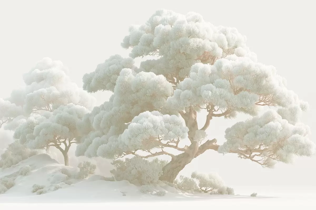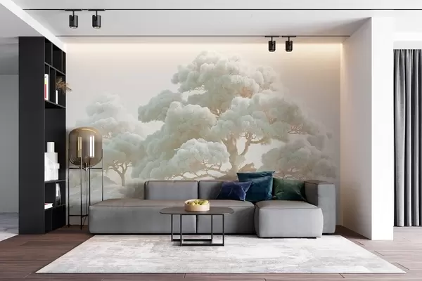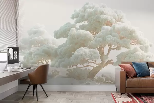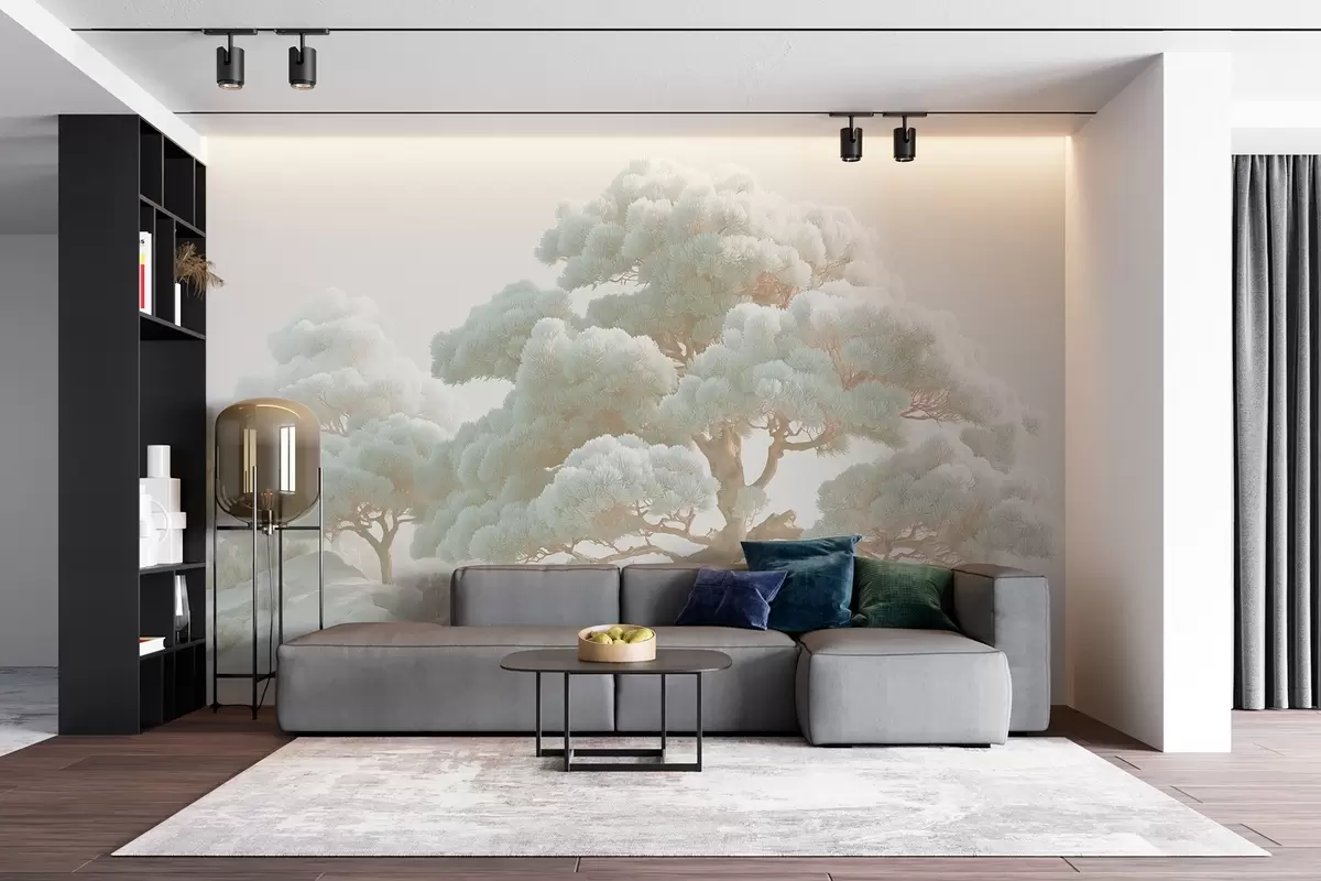Murais de parede Pinheiros na névoa em tons suaves em uma floresta Nr. w09122