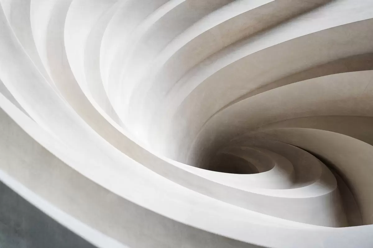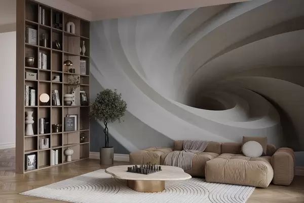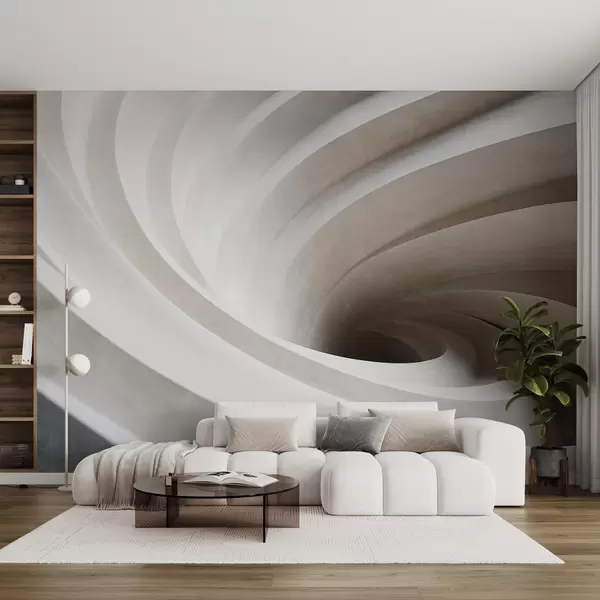 Murais de parede Redemoinho abstrato texturizado de camadas brancas e bege, criando um efeito de vórtice, composição dinâmica, design moderno e minimalista Nr. w09144