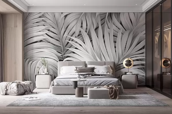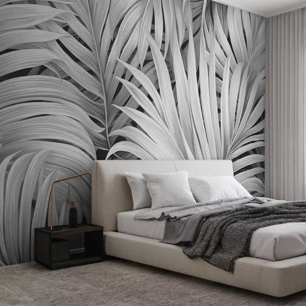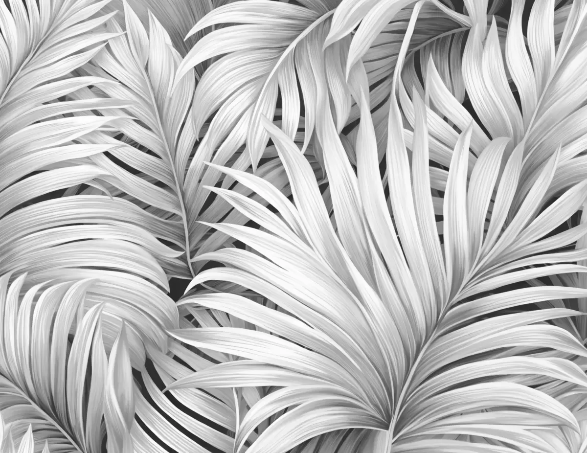 Murais de parede Folhas de palmeira tropical com textura monocromática, criando uma estampa tropical e botânica Nr. w09145