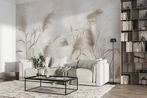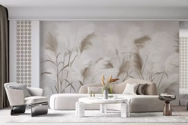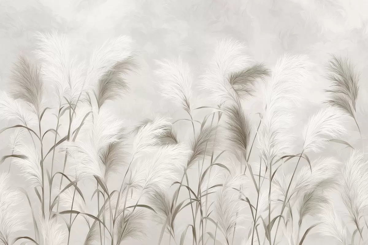 Murais de parede A elegante grama dos pampas floresce em tons de cinza e marrom Nr. w09150
