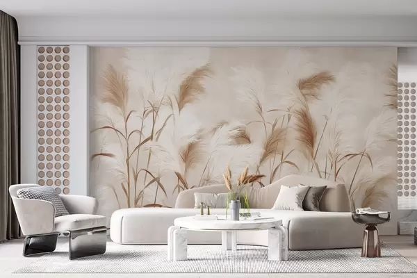 Murais de parede A elegante grama dos pampas floresce em tons suaves de bege e leitoso Nr. w09150v1