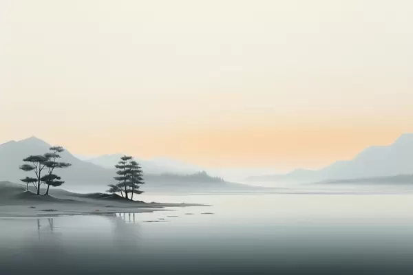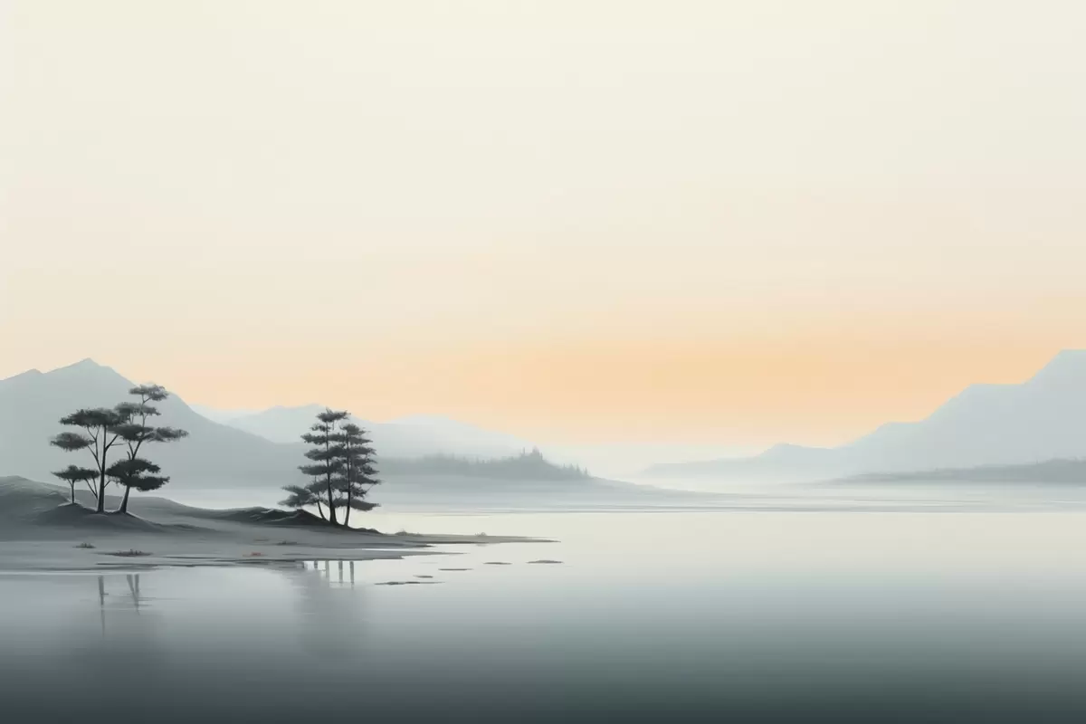 Murais de parede Paisagem minimalista com montanhas enevoadas e um lago Nr. w09151