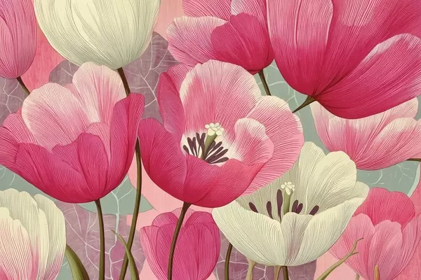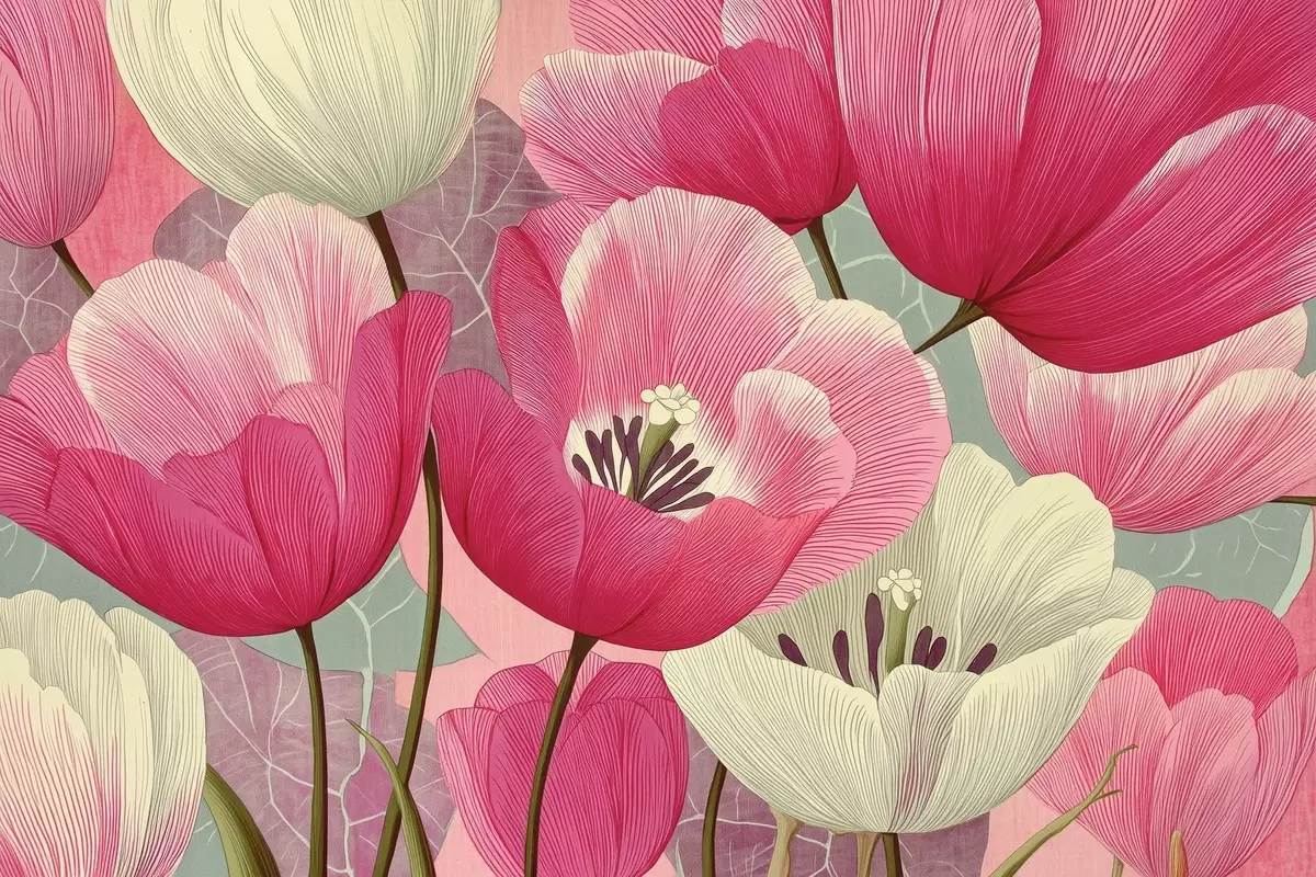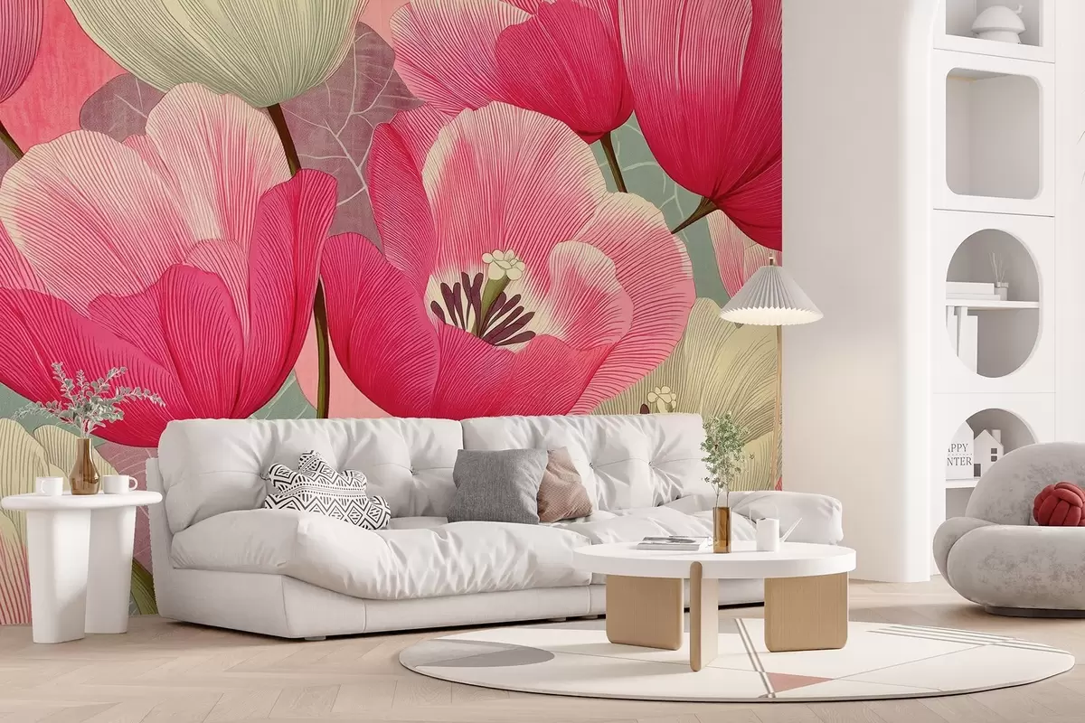 Murais de parede Papoulas vivas com folhas gráficas no plano de fundo Nr. w09152