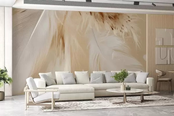 murais de parede Penas claras em tons quentes de bege e branco w09153