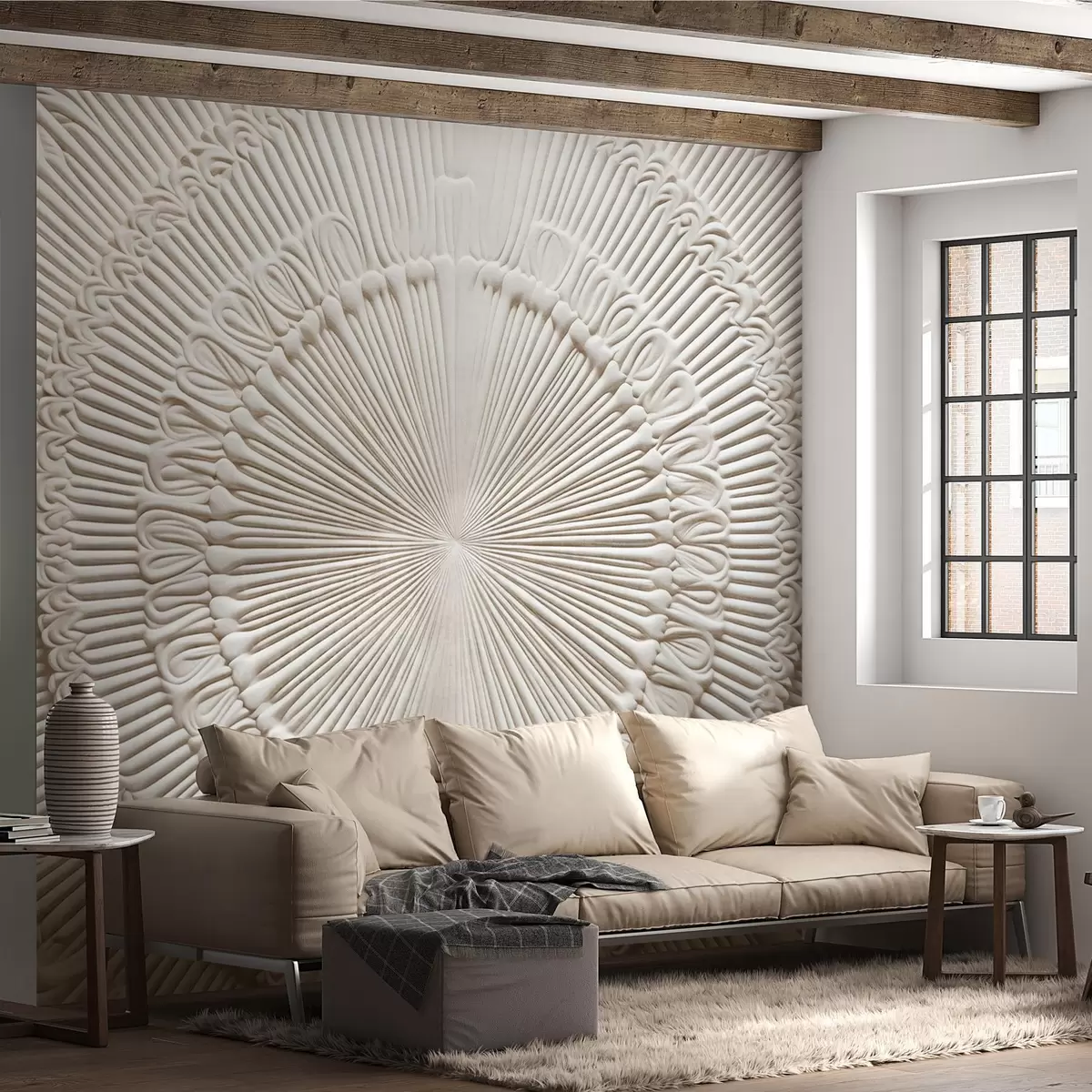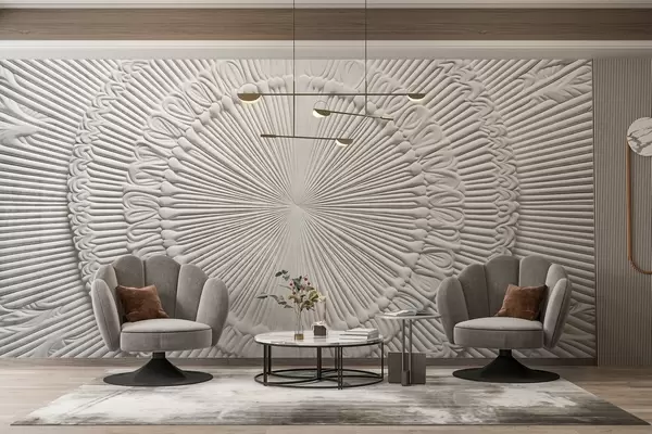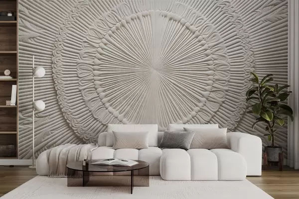 Murais de parede Impressão circular abstrata texturizada com linhas radiais e elementos decorativos, design simétrico, textura em relevo Nr. w09154