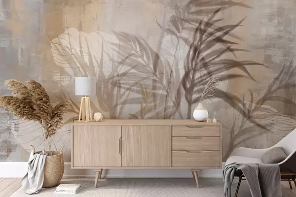 Murais de parede Ilustração botânica bege e marrom de grama dos pampas, texturas suaves e uma composição minimalista Nr. w09162