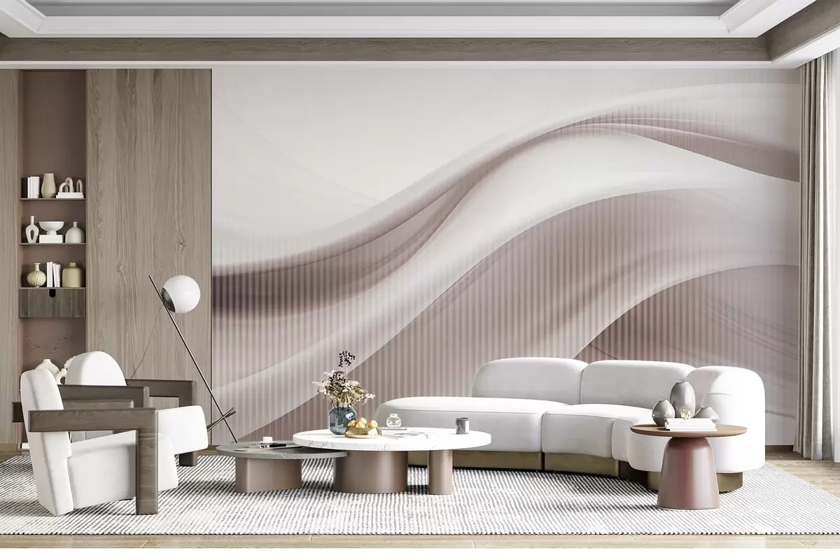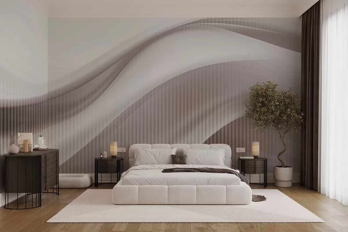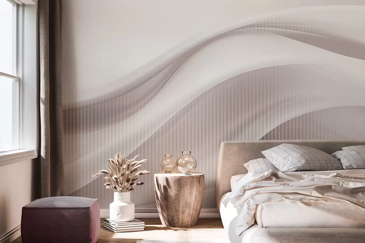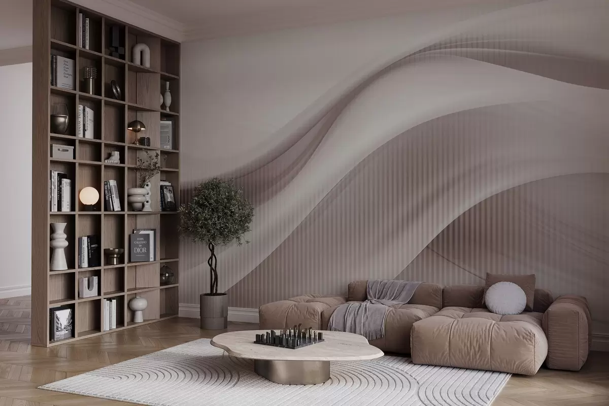 Murais de parede Estampa abstrata com linhas fluidas e listras verticais sutis, criando uma sensação de movimento e profundidade, paleta bege Nr. w09189