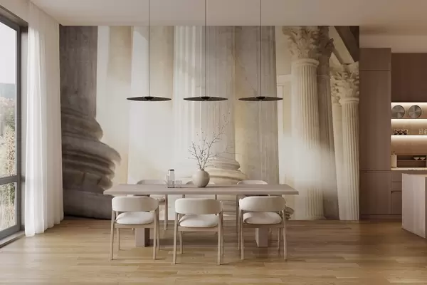 Murais de parede Colunas, arquitetura clássica, design elegante, composição simétrica texturizada, paleta de cores neutras Nr. w09209