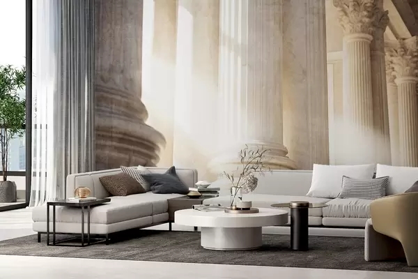 Murais de parede Colunas, arquitetura clássica, design elegante, composição simétrica texturizada, paleta de cores neutras Nr. w09209