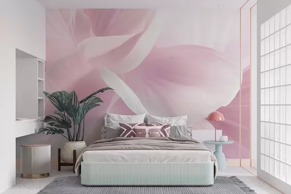 Murais de parede Flor abstrata texturizada com pétalas delicadas, iluminação suave, composição elegante, estética minimalista Nr. w09211v1