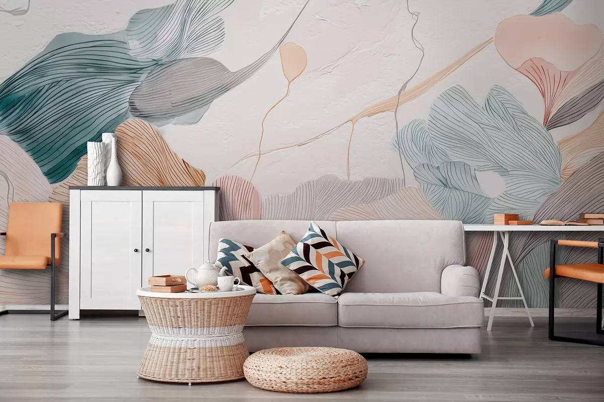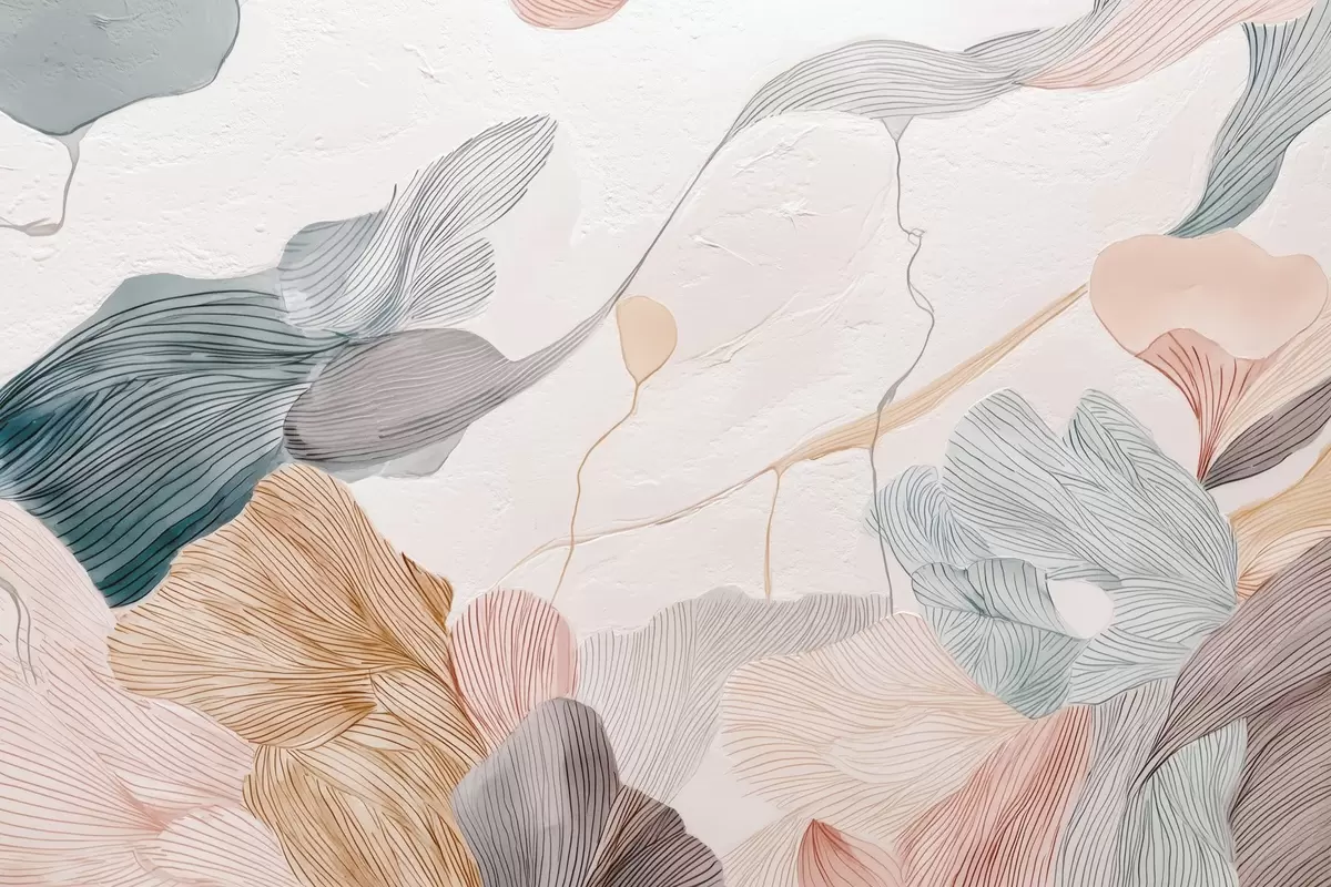 Murais de parede Folhas gráficas abstratas em tons pastéis quentes Nr. w09222