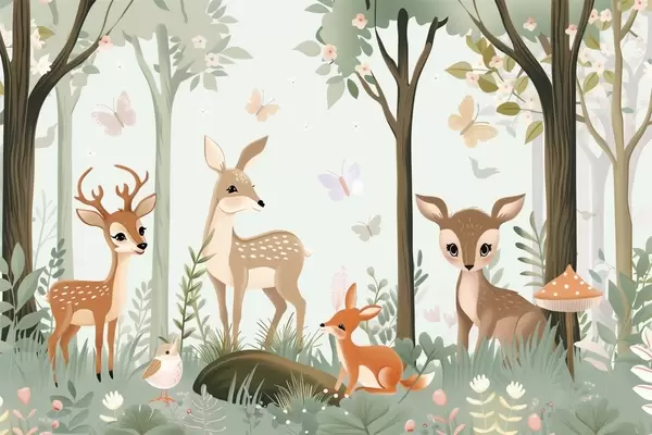 Murais de parede Animais caprichosos da floresta em tons de azul Nr. w09227v1