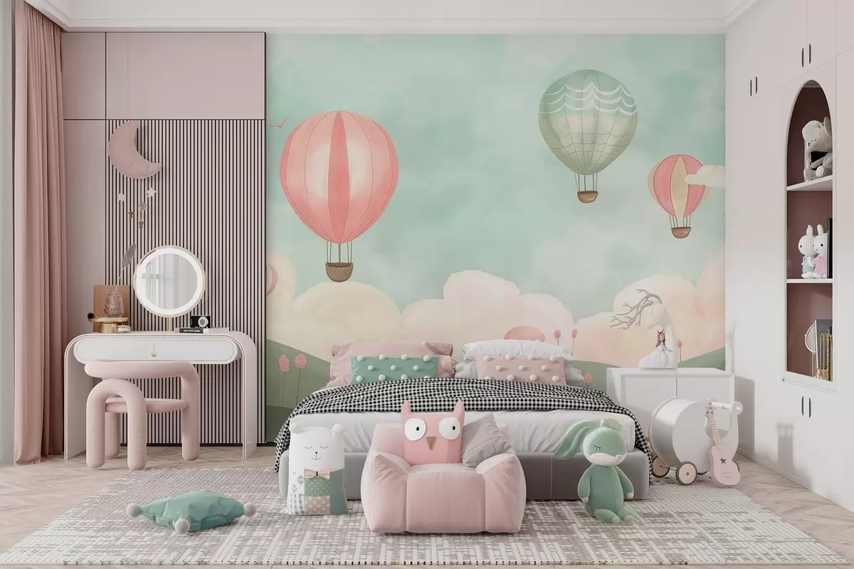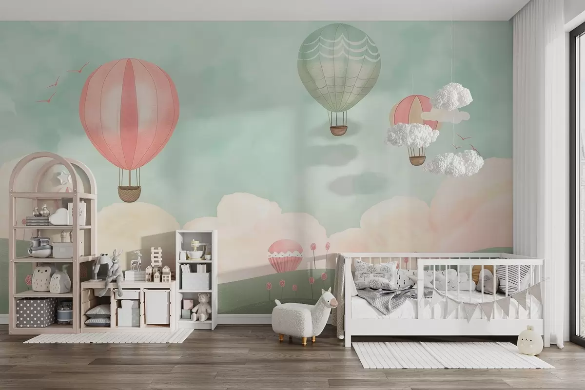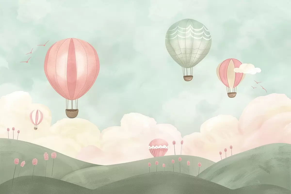 Murais de parede Balões de ar quente sobre colinas com nuvens Nr. w09228