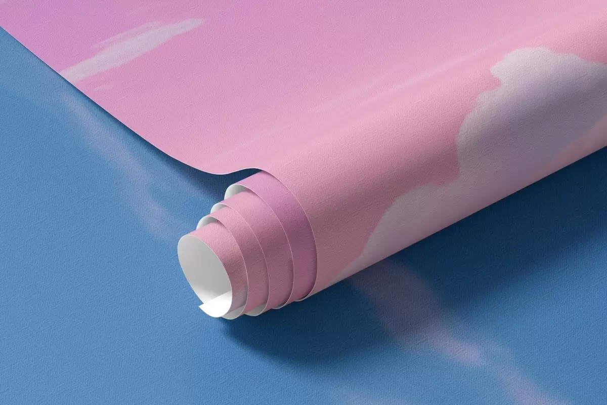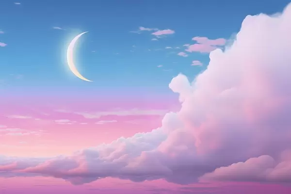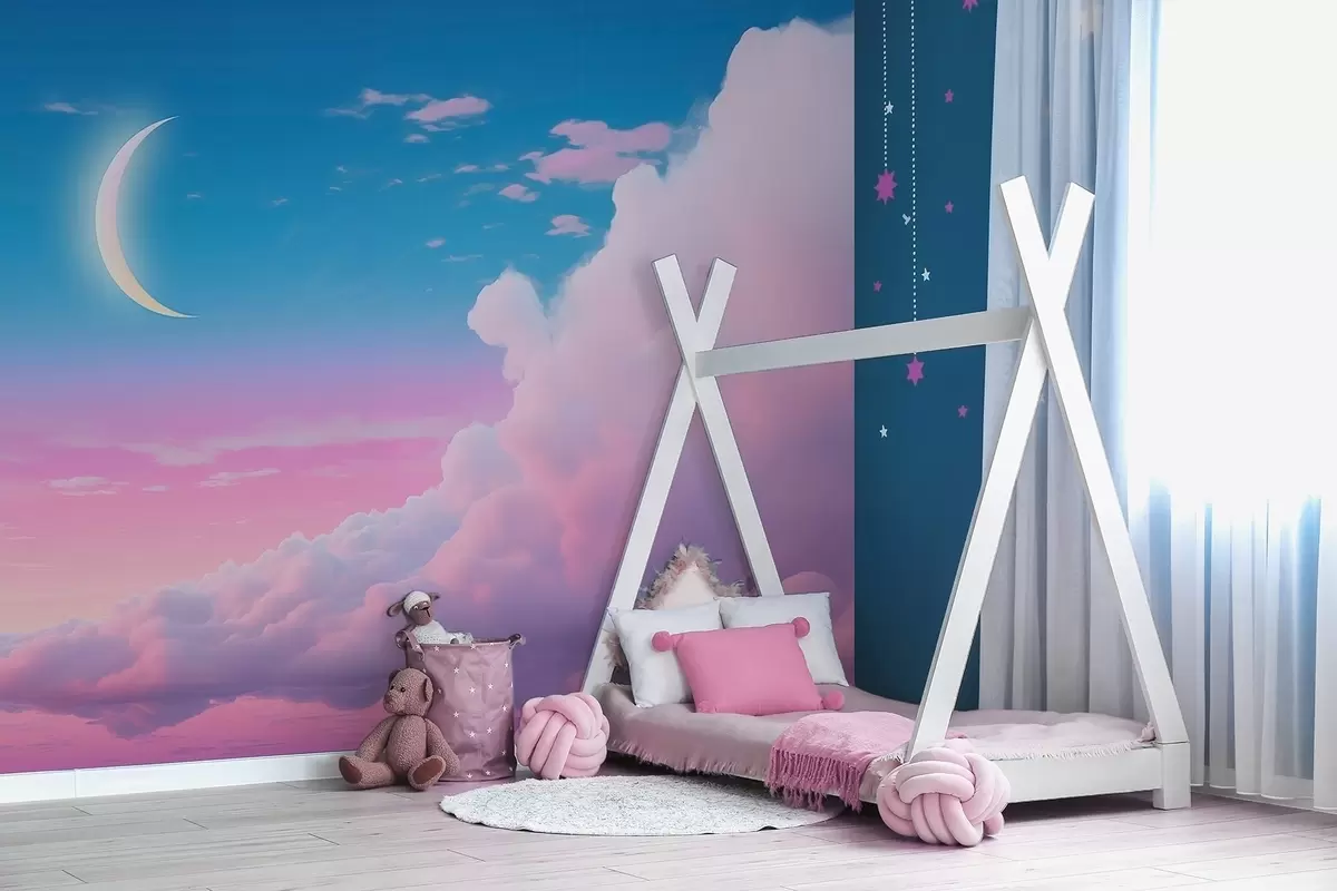 Murais de parede Pôr do sol mágico com nuvens e lua crescente em tons de rosa e azul Nr. w09240