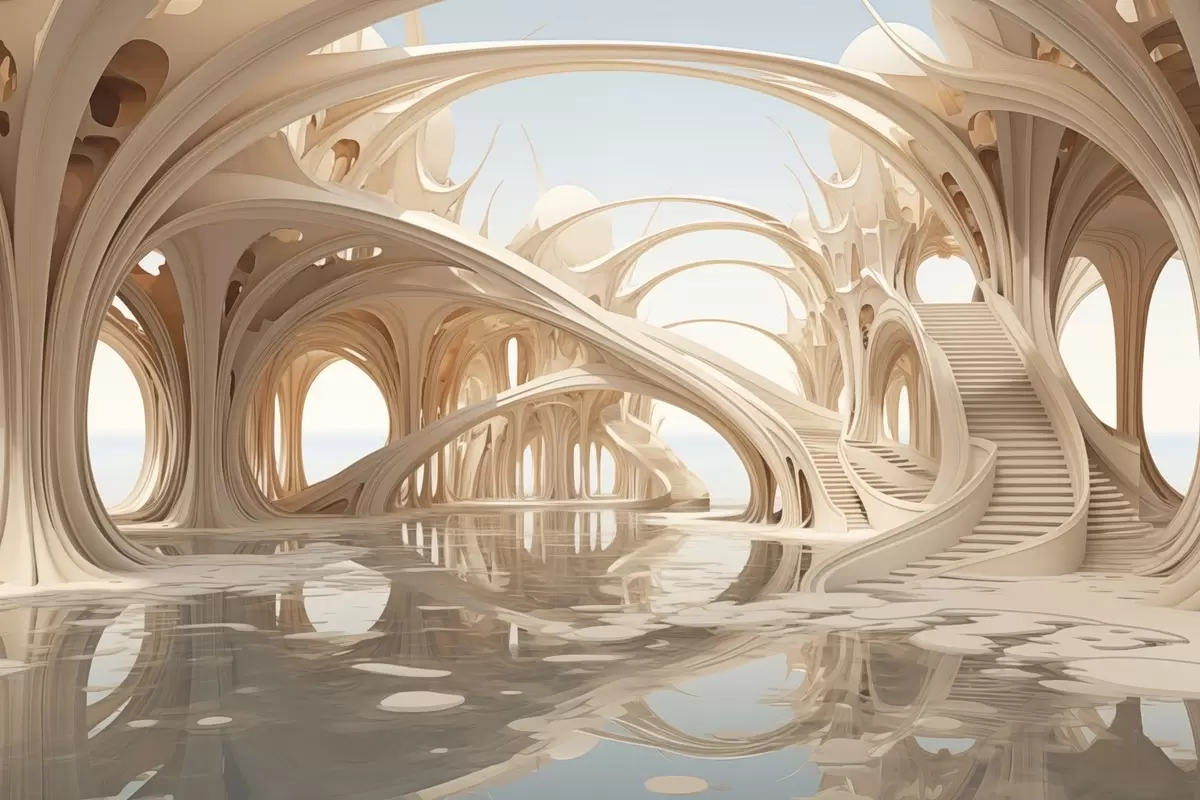 Murais de parede Arquitetura de fantasia com arcos sobre a água Nr. w09241