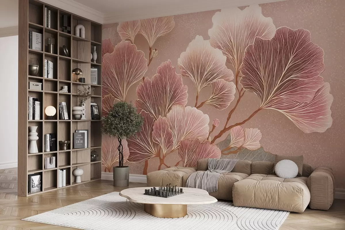 Murais de parede Ramo de folhas em tons de rosa e roxo Nr. w09249