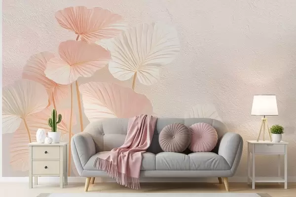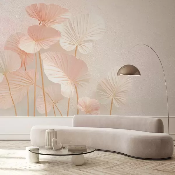 Murais de parede Folhas tropicais grandes e elegantes em delicada cor rosa Nr. w09252v1
